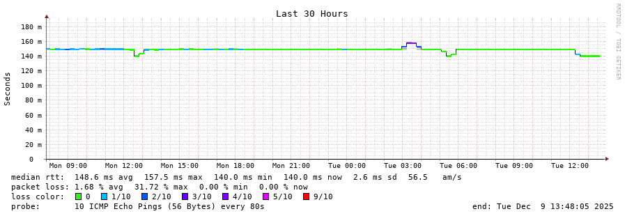 traceroute to 168.197.85.27 (168.197.85.27), 30 hops max, 60 byte packets - Generated at 2025-12-08 18:30:01
