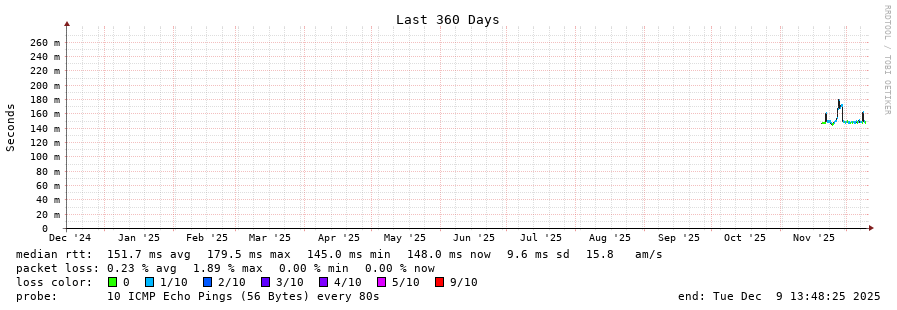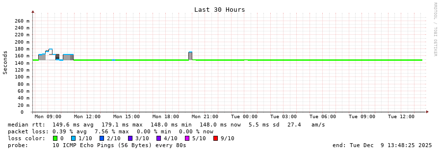14 > 170.79.84.235 (170.79.84.235) [AS266284] 148.485ms 148.471ms 148.542ms