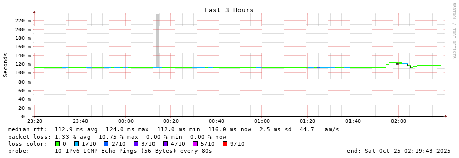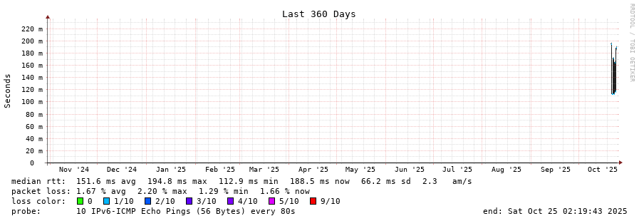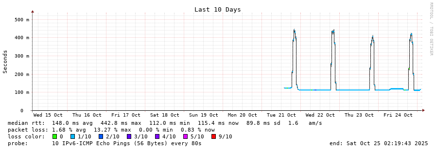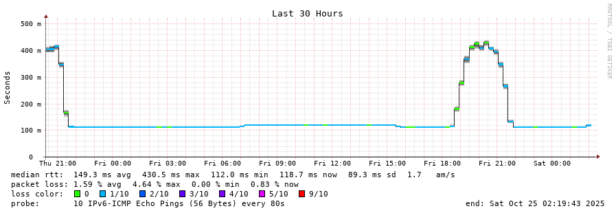 traceroute to 2001:4350:1:1::ff90 (2001:4350:1:1::ff90), 30 hops max, 80 byte packets - Generated at 2025-10-24 14:15:01