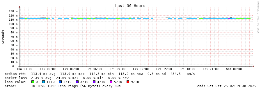 traceroute to 2c0f:5400:2:15::1 (2c0f:5400:2:15::1), 30 hops max, 80 byte packets - Generated at 2025-10-24 14:30:02