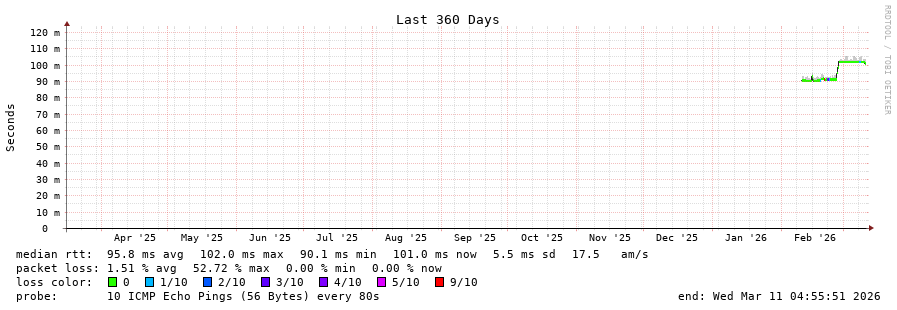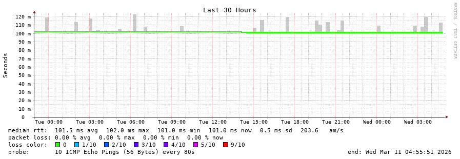 11 > be102.ams-gsa1-sbb1-nc5.nl.eu (54.36.50.244) [AS16276] 98.596ms 98.355ms 98.363ms
