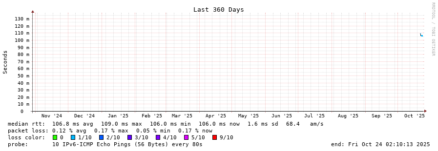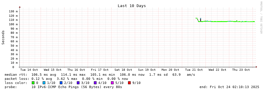 14 > 2a03:bb40:1::b (2a03:bb40:1::b) [AS61211] 106.370ms 105.612ms 105.925ms