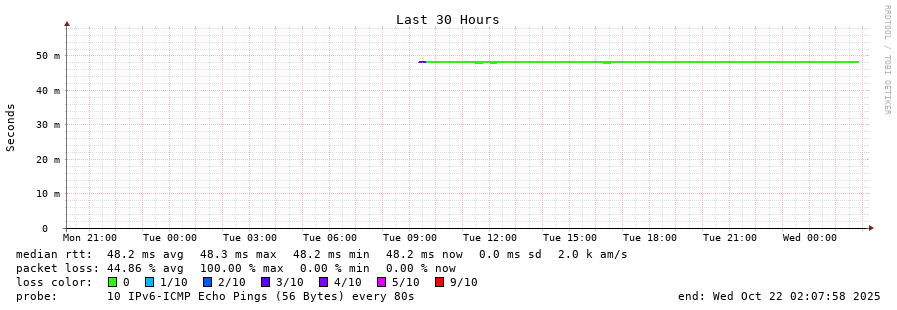 traceroute to 2604:2dc0:30b::2:0:2c0 (2604:2dc0:30b::2:0:2c0), 30 hops max, 80 byte packets - Generated at 2025-10-21 20:30:01